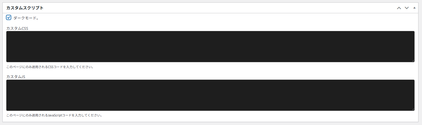 - 個別JS(wp_footer): ページ最下部で動作するスクリプトを設定。