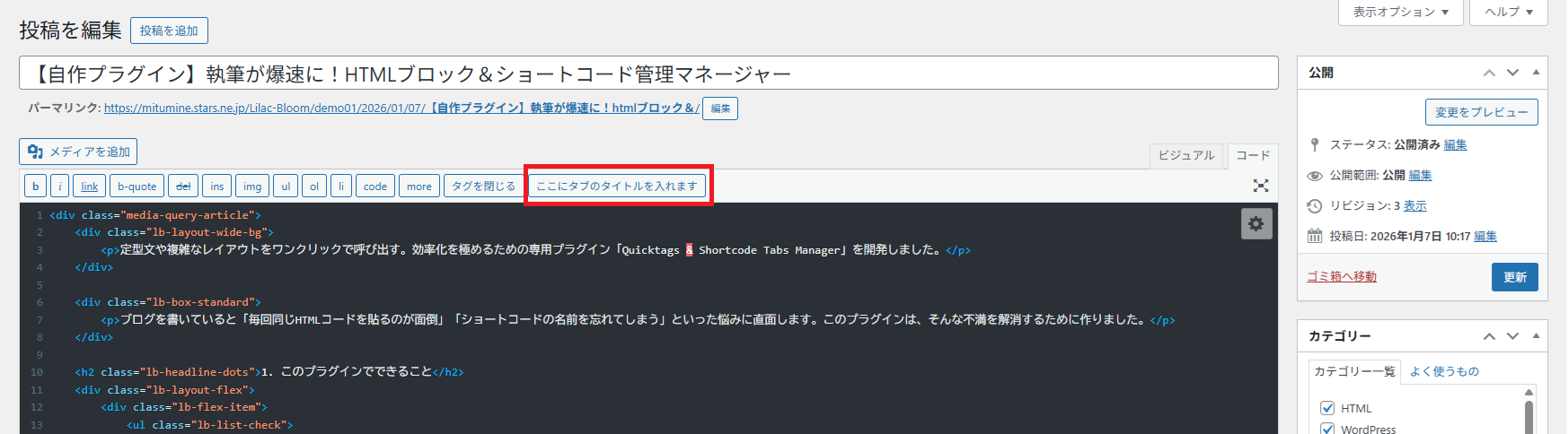 定型文や複雑なレイアウトをワンクリックで呼び出す。効率化を極めるための専用プラグイン「Quicktags & Shortcode Tabs Manager」を開発しました。